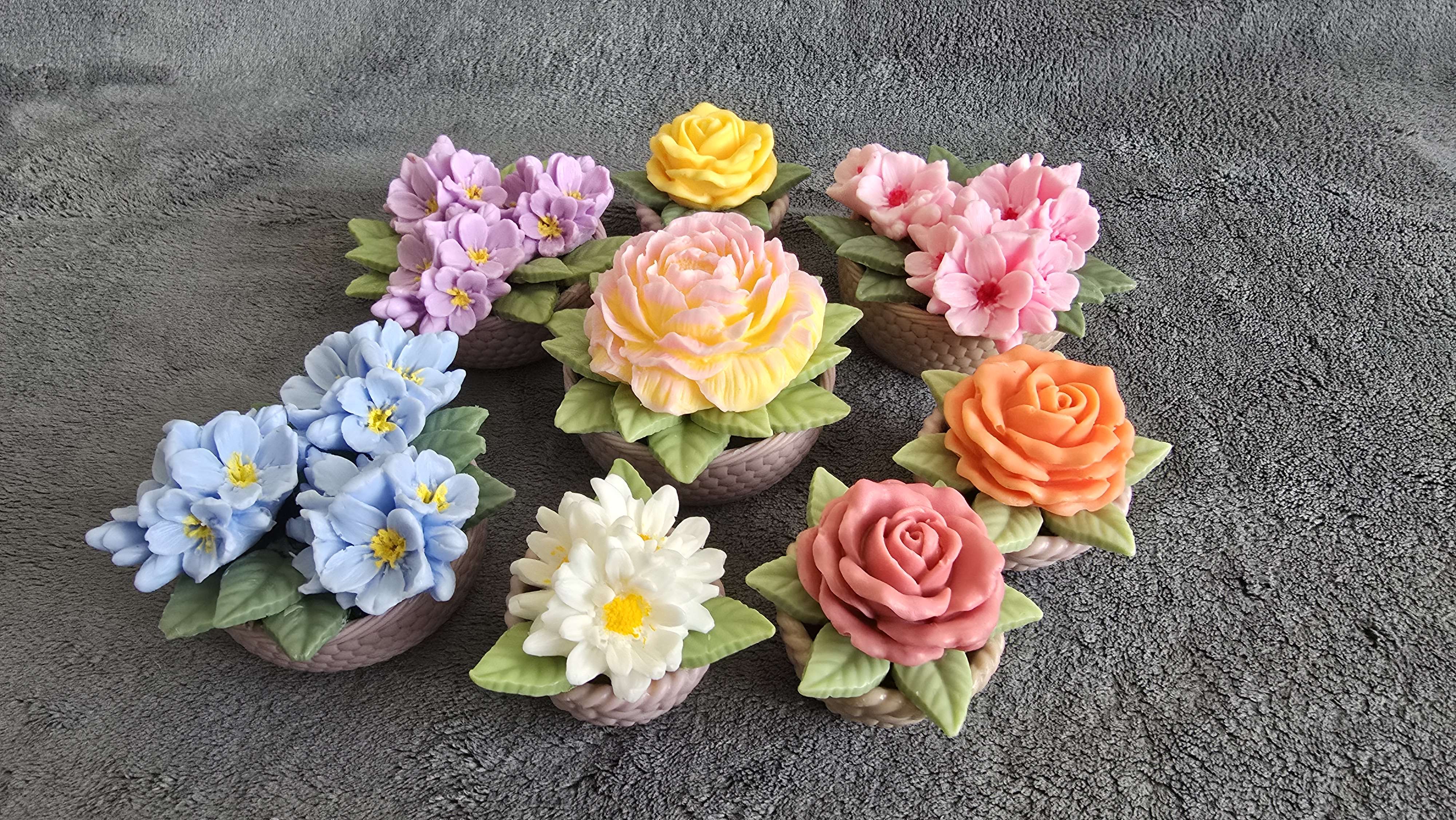 V našej ponuke nájdete krásne košíky plné mydlových kvetov rôznych farieb a vôní. Nechýbajú ani elegantné mydlové kytice či romantické srdiečka, ktoré sú ideálne nielen pre zamilovaných, ale aj ako milé prekvapenie pre mamu, babku, priateľku či svadobných hostí.